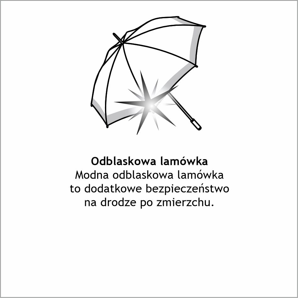 Ale nie z tym parasolem... bo nowoczesne i jasne kolory przyjemnie odświeżają jego wygląd a wokół jego czaszy błyszczy modna, odblaskowa lamówka.