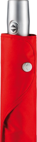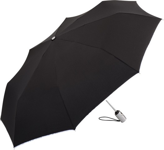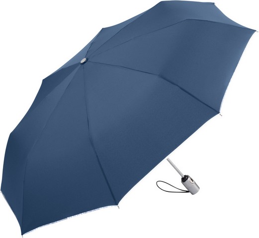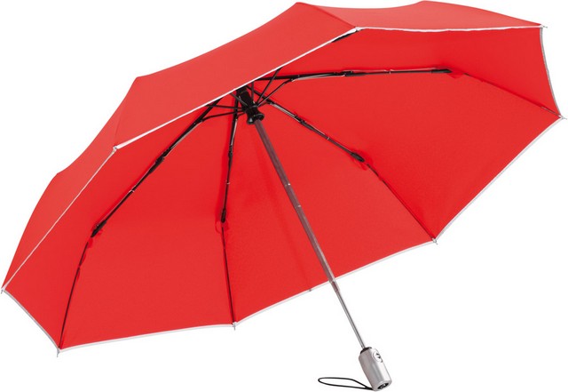 Charakterystyczny, duży, automatycznie otwierany i zamykany parasol z modną odblaskową lamówką.