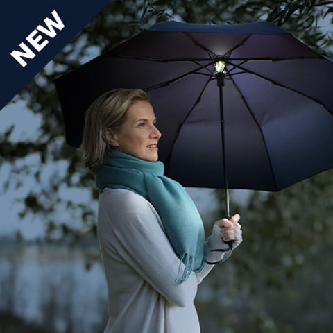 Efektowny parasol manualny z oświetleniem wewnętrznym LED. Niech stanie się światłość! Dzięki parasolowi FARE® Skylight wewnętrzne oświetlenie LED można łatwo włączać i wyłączać. Jest to bardzo praktyczne, jeśli na przykład szukasz kluczyka do samochodu na parkingu późno w nocy lub jeśli chcesz wybrać się na spacer po zmroku. Zwłaszcza jesienią i zimą ten kompaktowy parasol, przygotowany na silniejsze podmuchy wiatru, powinien zawsze znajdować się w kieszeni lub bagażu. Możesz też spokojnie pozwolić parasolowi zwisać z paska na nadgarstek.