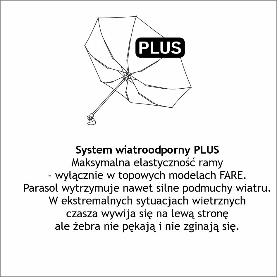 Średnica: 133 cm Długość: 96 cm Waga: 625 g Pokrycie: 100% poliester pongee Rączka: Soft-Feel w kolorze czarnym Brytów: 8 Sztuk w opakowaniu: 24