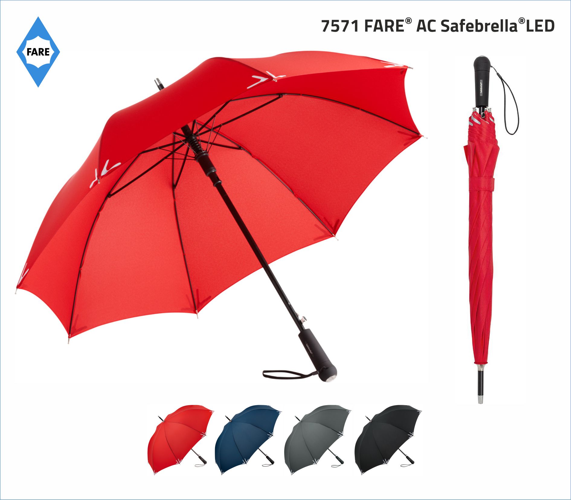 PARASOL FARE®Safebrella® LED AC REGULAR 7571 Długi parasol otwierany automatycznie