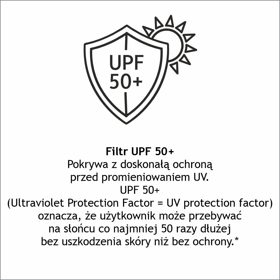 • *Materiał czaszy ma doskonałą ochronę przed promieniowaniem UV. Materiał włókienniczy jest badany w określonych warunkach pod kątem przepuszczalności szkodliwego promieniowania UV. Efekt ochronny wyraża współczynnik ochrony przed promieniowaniem ultrafioletowym (UPF). Im wyższy czynnik, tym lepszy efekt ochronny. • Test materiału został przeprowadzony zgodnie z procedurą testową AS/NZS 4399:2017. • Współczynnik ochrony przed promieniowaniem UV (UPF) wskazuje, jak długo użytkownik przedmiotów z ochroną UV lub noszący odzież chroniącą przed promieniowaniem UV może przebywać na słońcu bez uszkodzenia skóry. Obliczenia opierają się na własnym czasie ochrony skóry, który różni się w zależności od rodzaju skóry. Istnieje 6 różnych rodzajów skóry. • UPF np. 50 oznacza, że użytkownik może wydłużyć swój czas przebywania na słońcu pięćdziesięciokrotnie bez powodowania uszkodzeń skóry. Długość pobytu zależy od rodzajów skóry opisanych powyżej. |